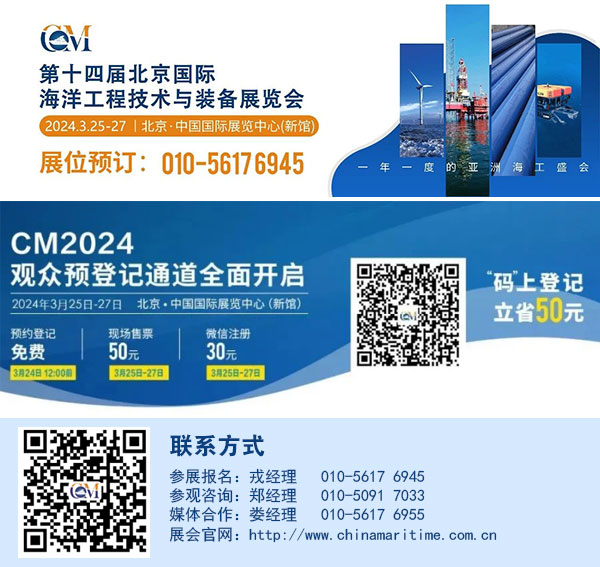 3月25日-27日,第十四屆北京國際海洋工程技術與裝備展覽會(CM2024北京海工展)將在北京•中國國際展覽中心(新館)舉辦,將重點展示海洋油氣、海工裝備、水下機器人、海上風電等領域裝備和技術。第二十四屆中國國際石油石化技術裝備展覽會(cippe2024)將同期舉辦。