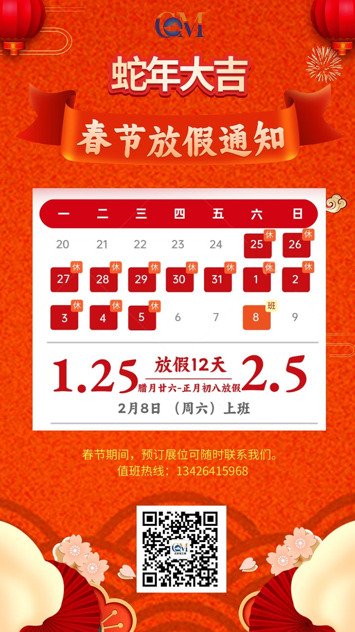 春節(jié)放假通知 | CM2025北京海工展恭祝蛇年大吉!